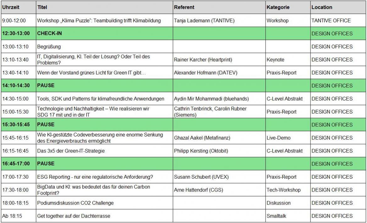 Zeitplan und Agenda